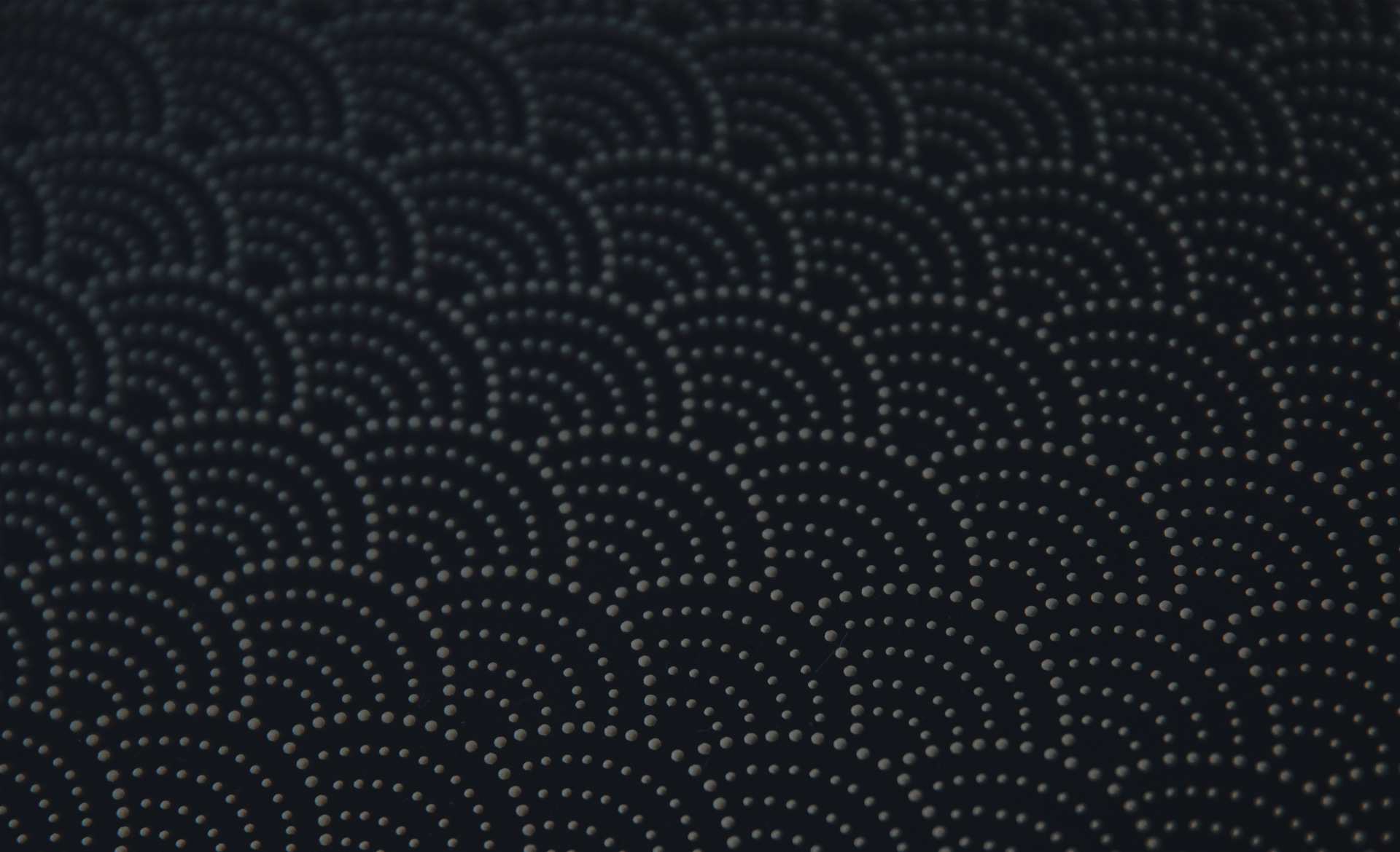 同心円の一部が扇状に重なり合った幾何学的な連続模様で、大海原を意味し、無限の海の広がりを表す図柄です。海がもたらす幸福を呼び起こす吉祥模様として能装束や着物・帯等に多く使用されています。