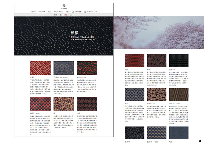 印傳屋に伝わる約300 種あまりの模様の中から代表的な模様を掲載。日本に受け継がれる伝統の吉祥模様や印傳屋が独自に進化させた模様などとともに、それらに込められた願いや謂れを紹介しています。