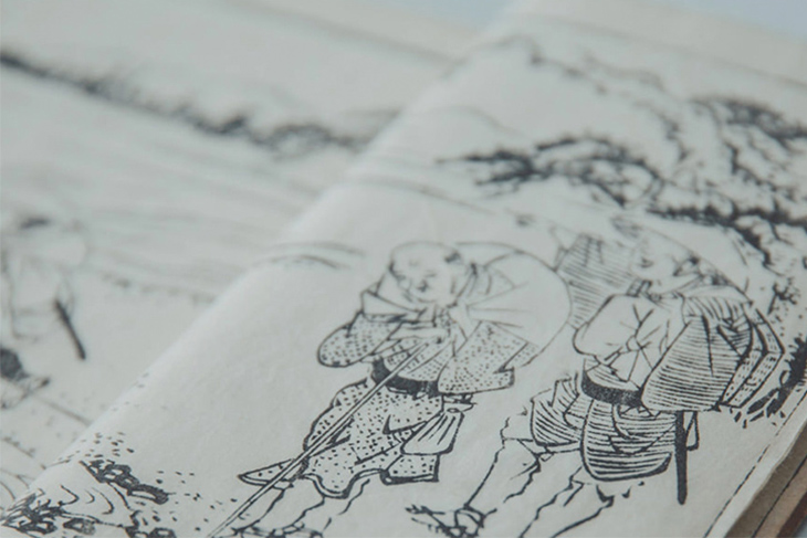 「腰に下げたる 印伝の巾着を出だし 見せる」。 弥次喜多の珍道中として知られる十返舎一九の滑稽本『 東海道中膝栗毛』(1802~1809 年刊) にも印伝が見られます。