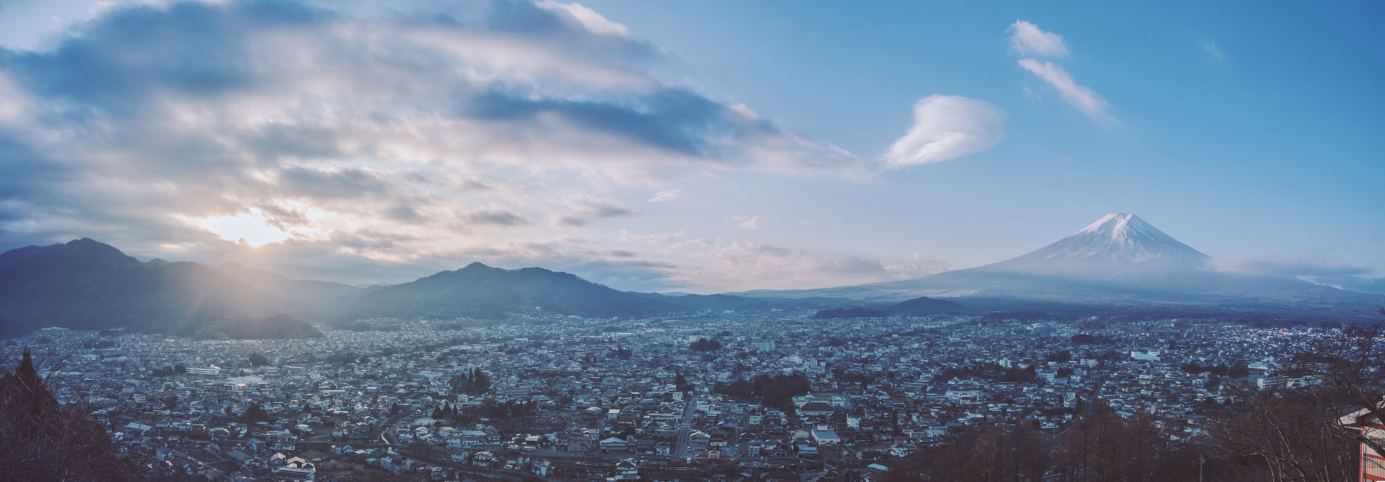 撮影した場所は、印傳屋のある甲府から車で1時間ほどの距離にある山梨県富士吉田市の新倉山浅間公園。富