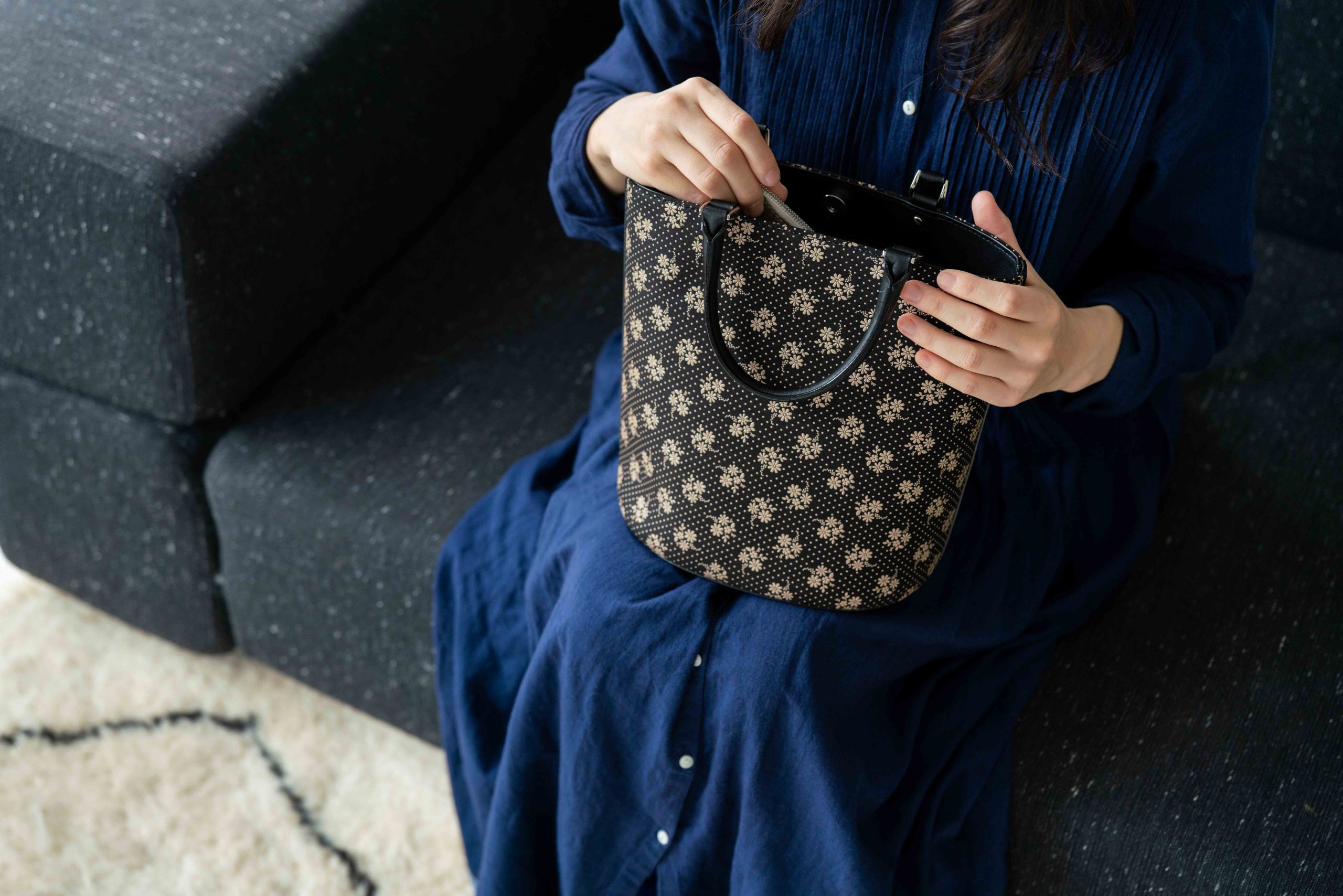 秋桜模様のバッグは、小ぶりなサイズ感ながらマチ付きのため収納力もある優れものです。