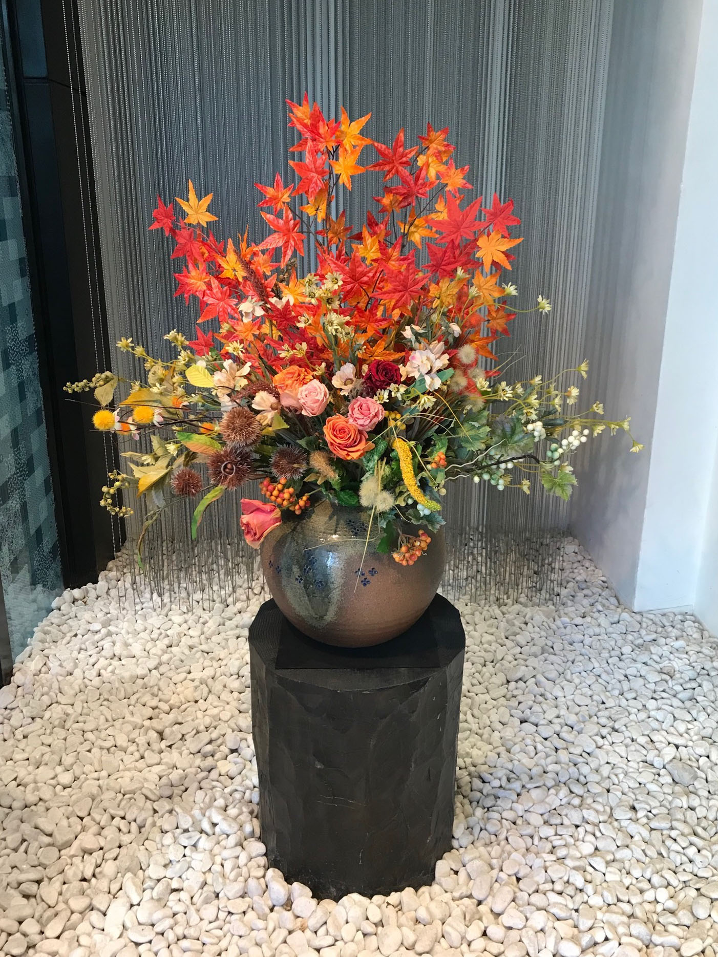 心斎橋店の入口では、月替わりで季節のお花がお客様をお迎えします。