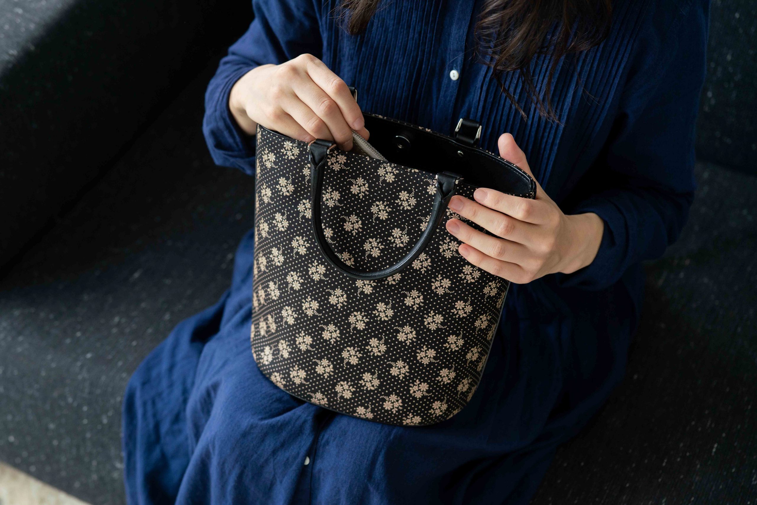 秋桜模様のバッグは、小ぶりなサイズ感ながらマチ付きのため収納力もある優れものです。