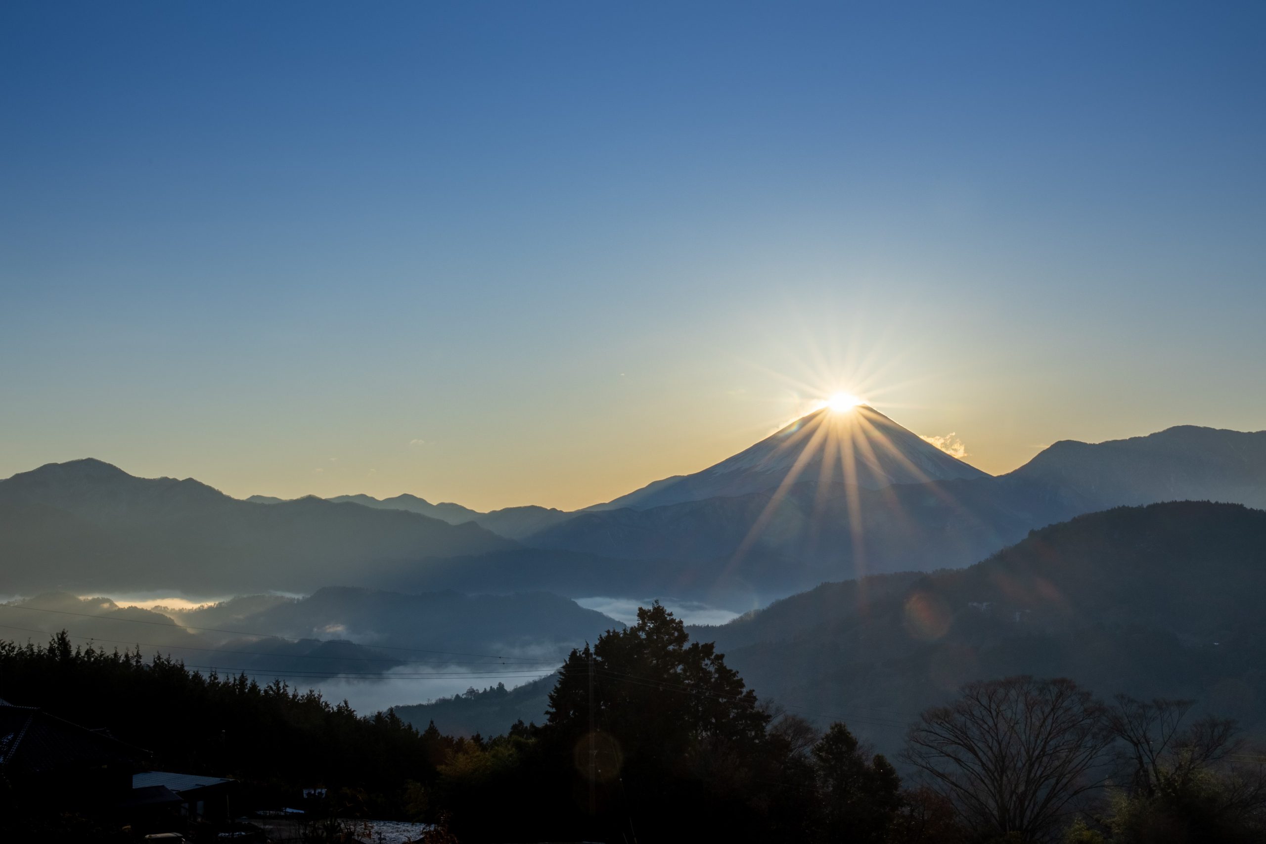 詩人、高村光太郎が「うつくしきものミ(満)つ」と大いに感嘆した山梨県富士川町髙下(たかおり)は、冬至から新年にかけて「ダイヤモンド富士」を見ることができる絶景として知られています。