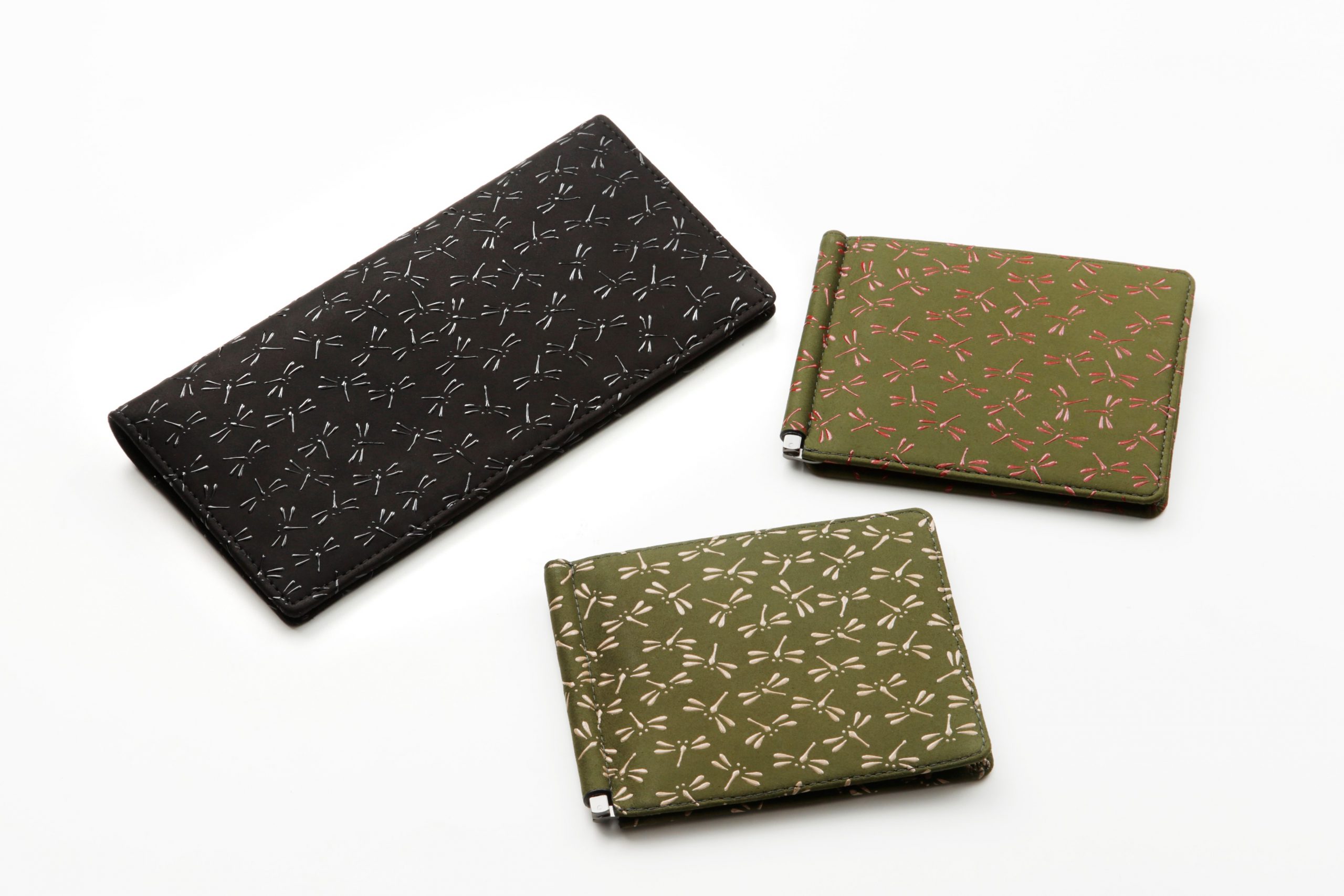 右):札ばさみ(とんぼ模様/若草地×赤漆/若草地×白漆)価格:12,100円(税込)