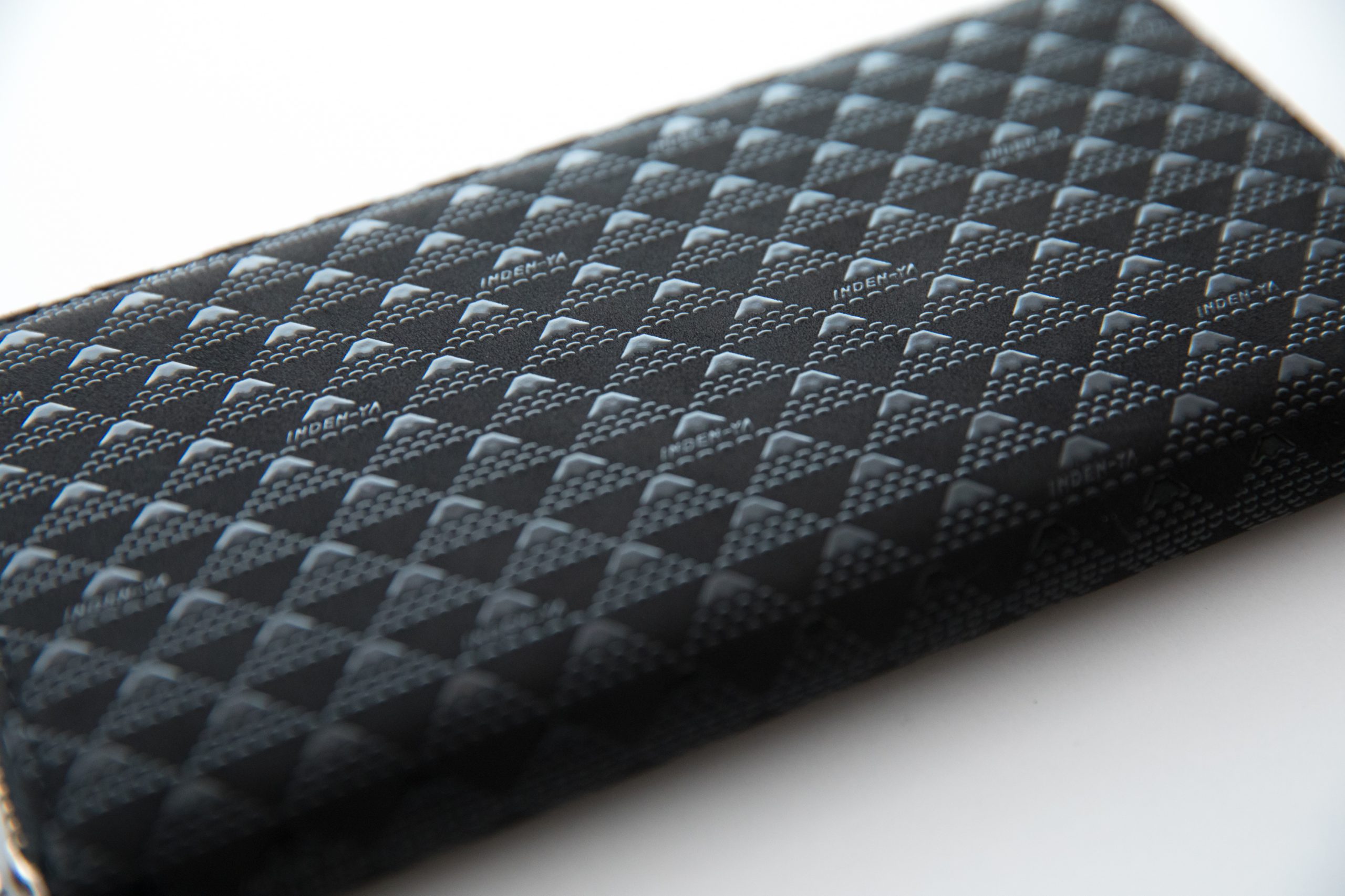 その伝統の模様を現代の感性でシャープに表現した印傳屋の新しいメンズブランドです。黒革に黒漆、茶革に茶漆の2種類。