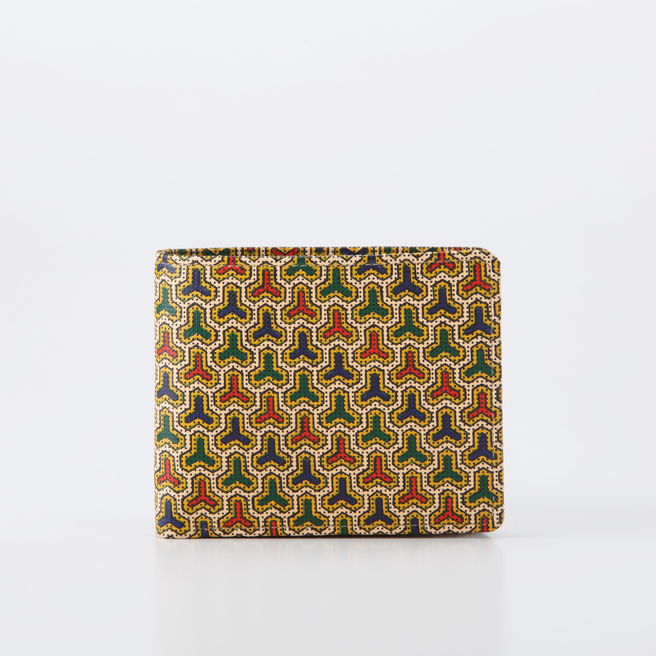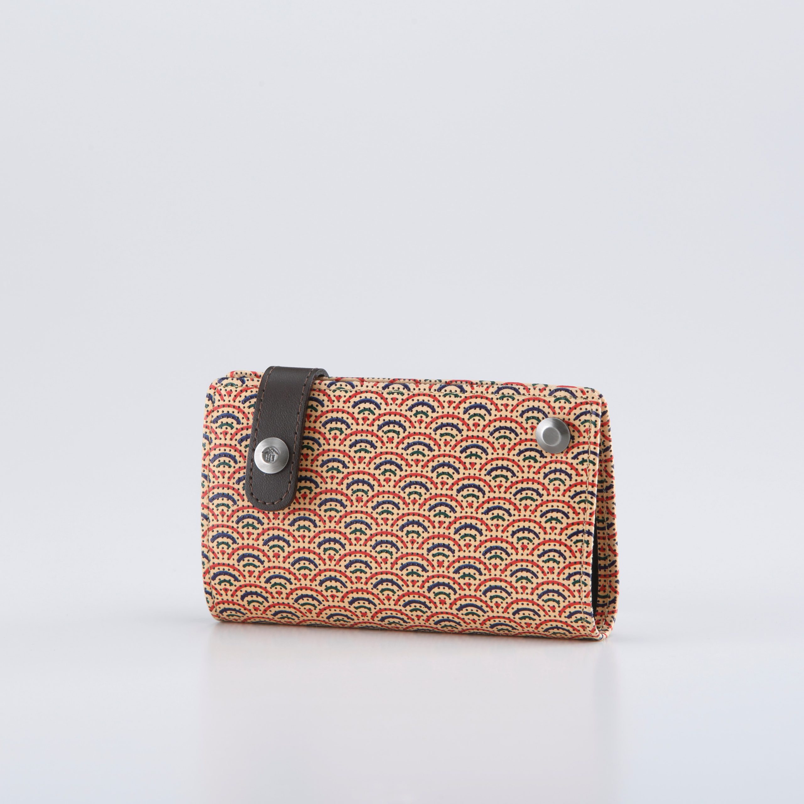 「印伝の更紗」は、その模様染をもとに考案された技法です。染色された鹿革に、一色ごとに型紙を替えて、色を重ねていくことで、鮮やかな色彩の調和を生みだします。