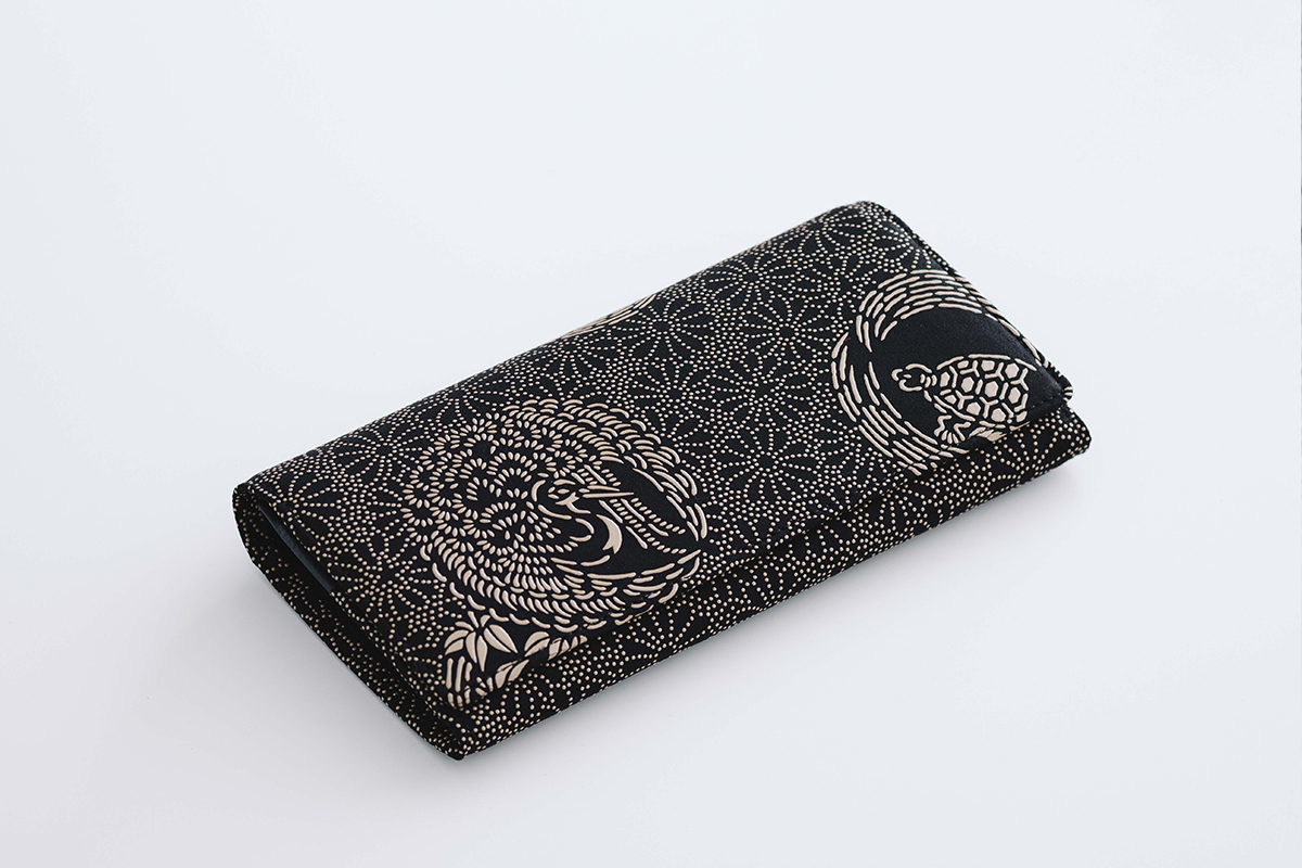 印傳屋の新春を飾る「鶴亀」模様の印伝を、今年も印傳屋直営店にて販売いたします。