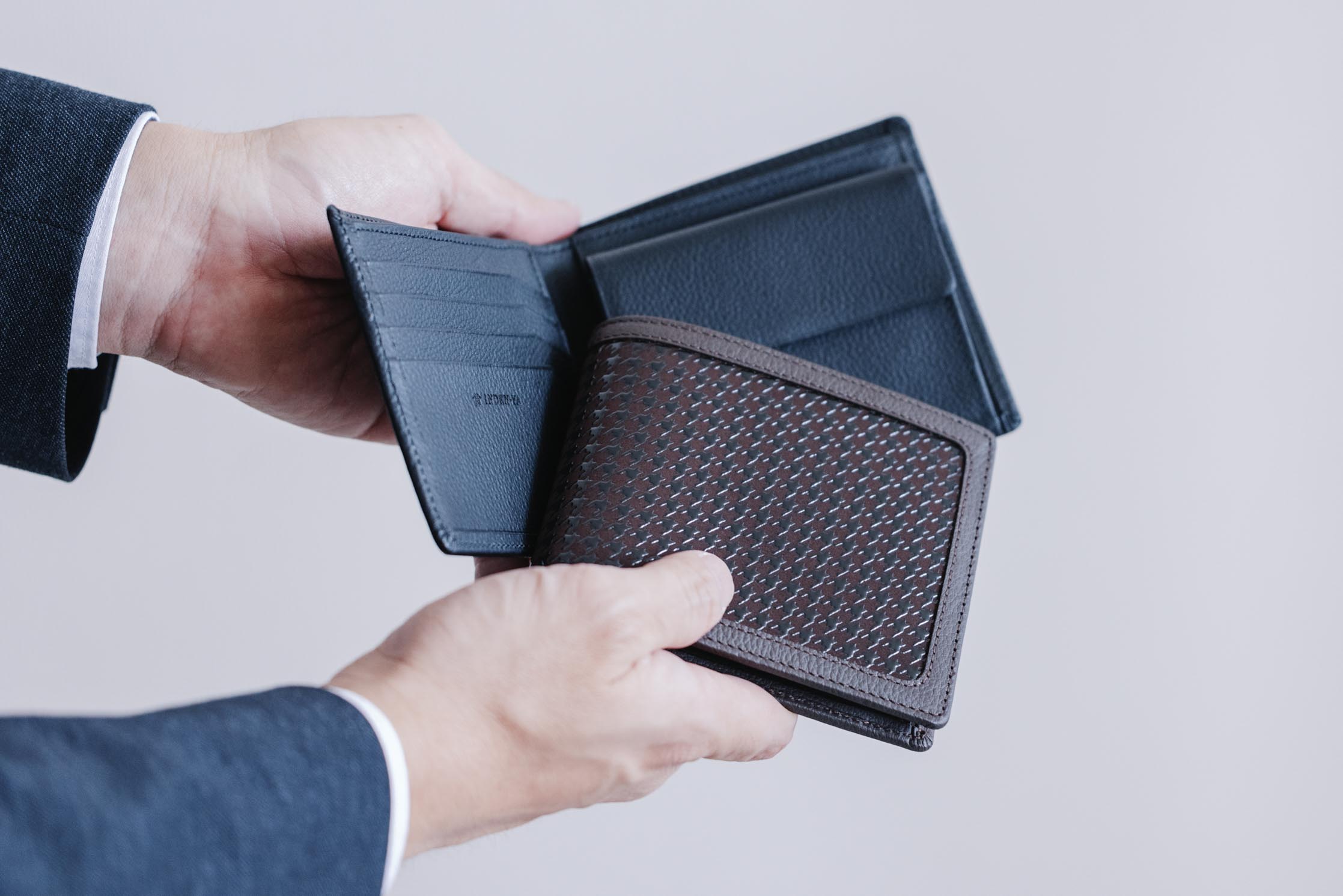 左)札入J [毘沙門亀甲]価格:15,950円 (税込) 右)札入 J[エジプトサンカク]価格:15,400円(税込)