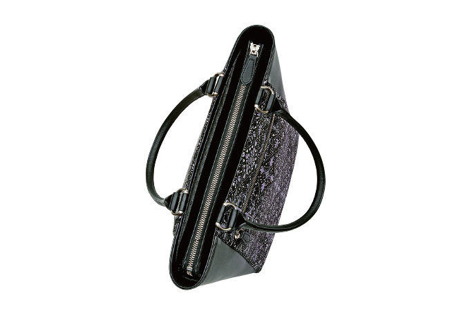 手提げ24.5×34×12cm- 口前はファスナーで両アオリポケットと内側にオープンポケット1つ。