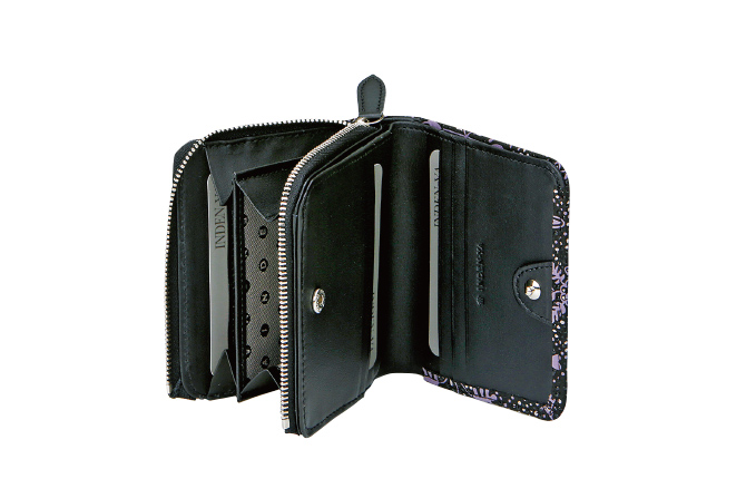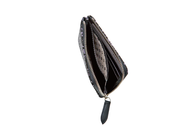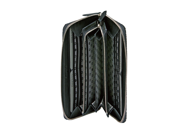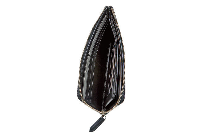 - 内側のL字ファスナー式小銭入は2室に分かれており、 ほか札入2つ、ポケット4つ、カードポケット20。