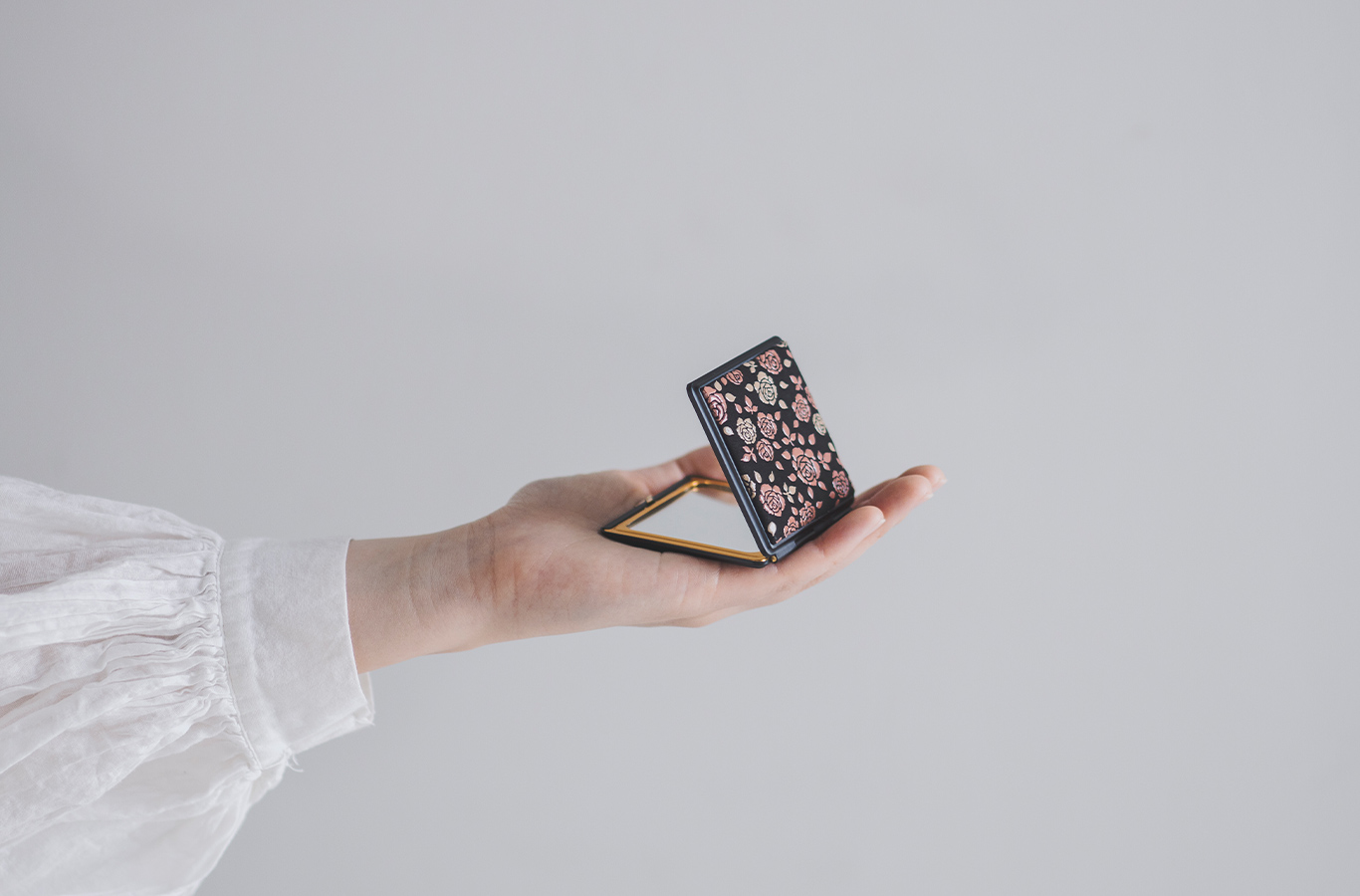 ピンクと白の漆で薔薇の花園を表した「かぐわ」。いつも薔薇の芳しい薫りに