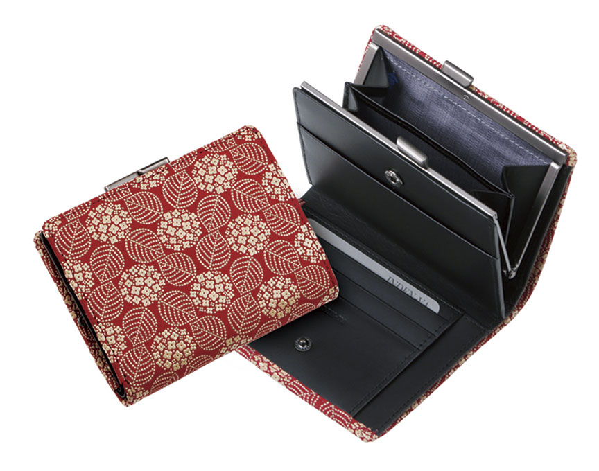 - 小銭入はがま口式で中仕切り付き