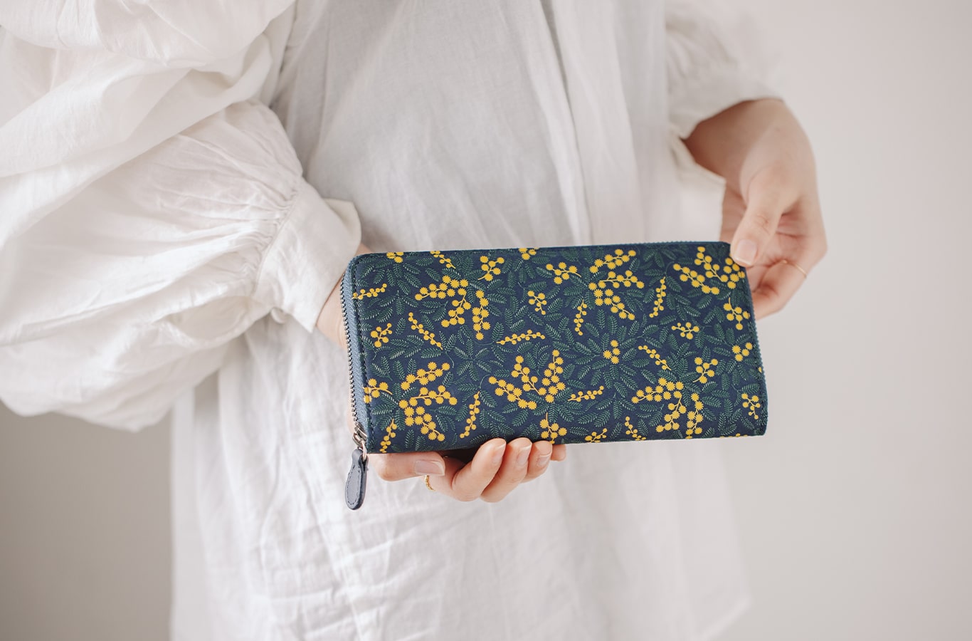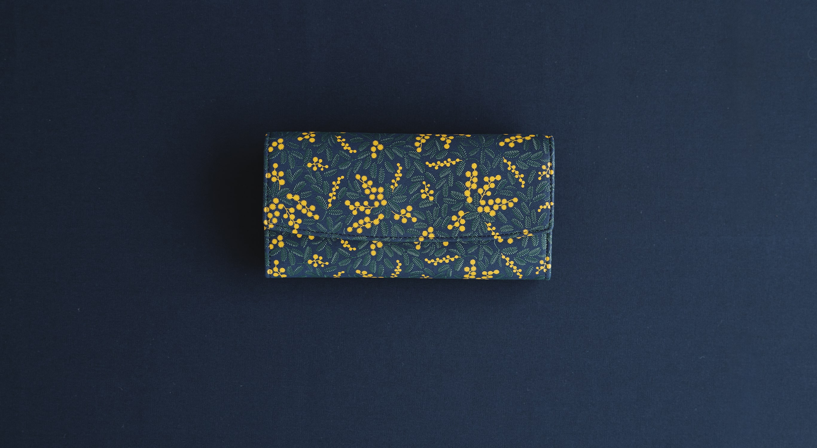 「ミモザ模様の印伝」も、感謝の花言葉を添えた“春の印伝”として親しまれる事を願って誕生しました。