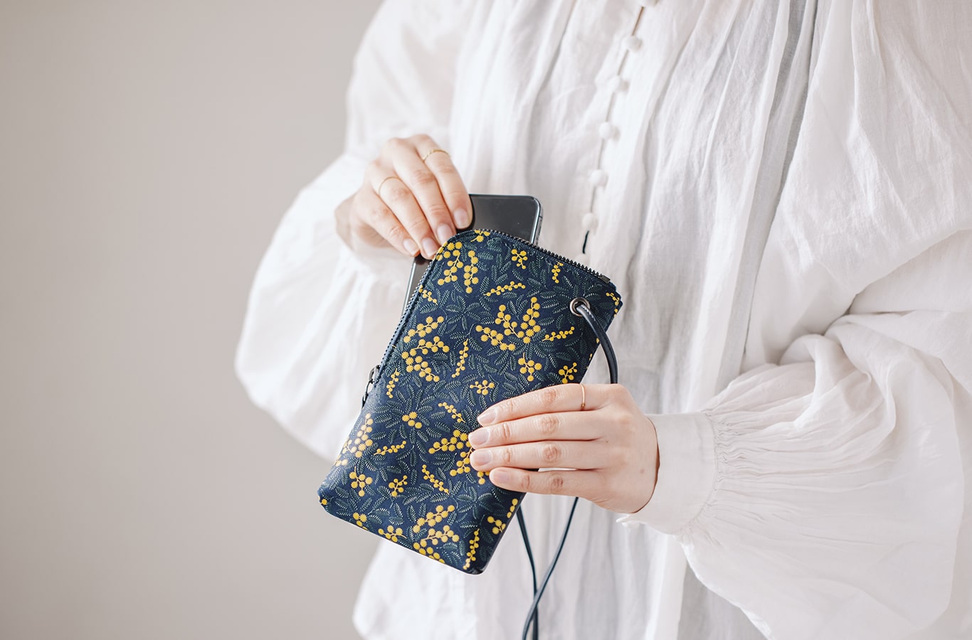 そんな春を待つ心をぽっと明るくしてくれるミモザを、印伝の模様にしました。