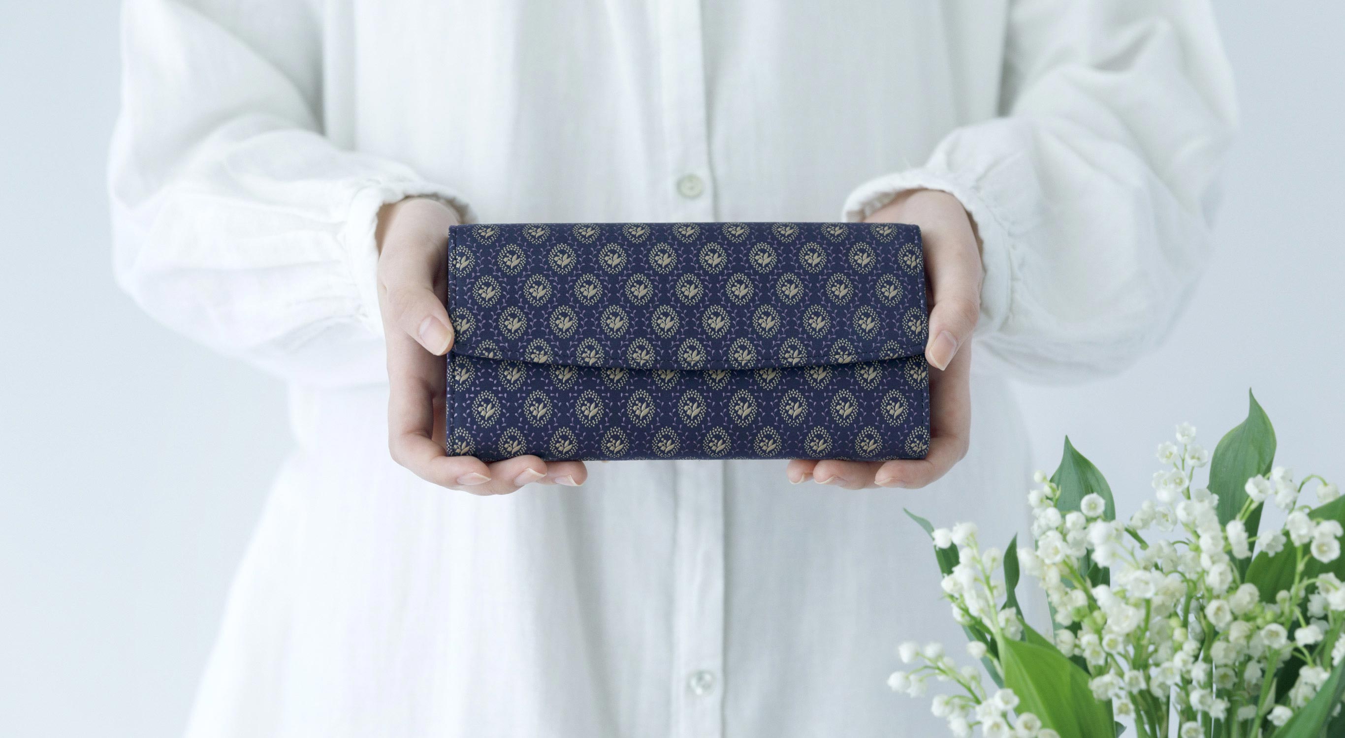 いつまでも、しあわせでいてほしいひとに、鈴蘭模様の印伝でその想いを伝えてみませんか。