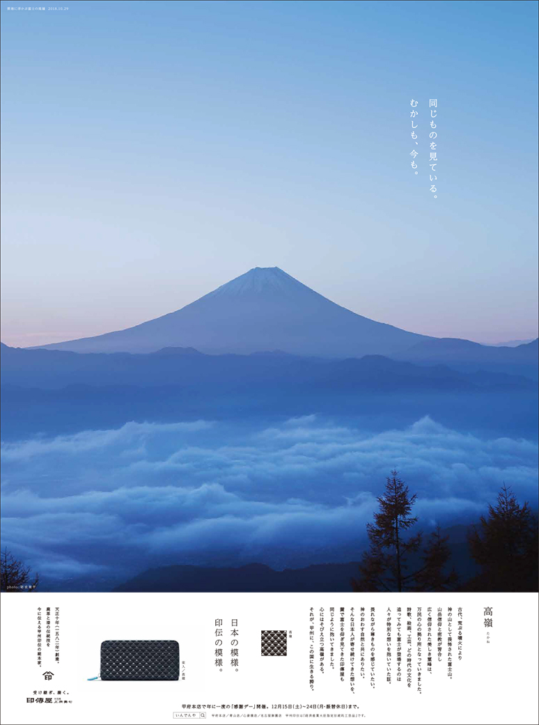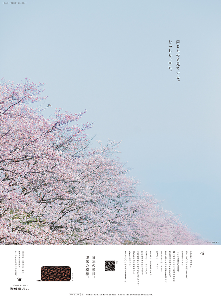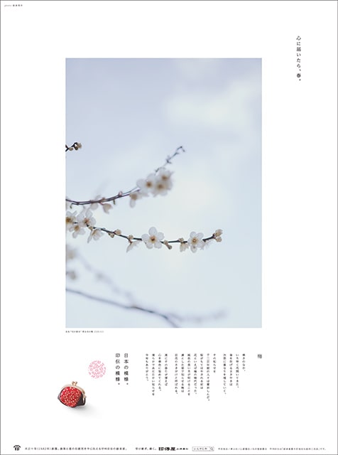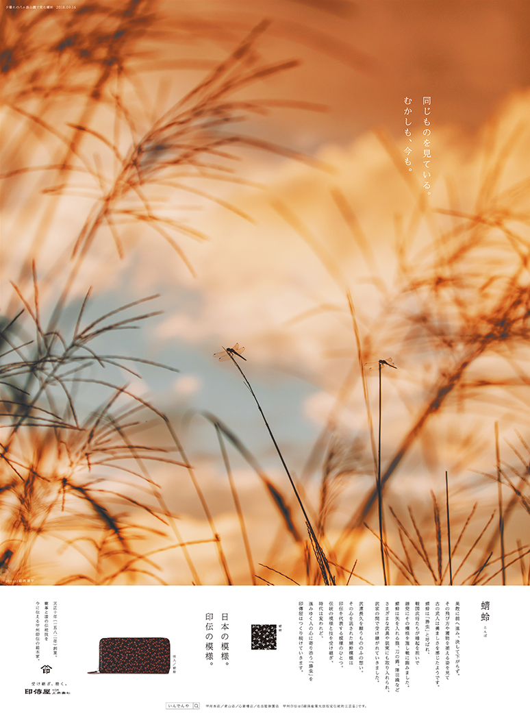 古よりこの国の人々は自然の力や美しさを敏感に感じとり、 そこから幸運や力を得ようとさまざまな模様を創出し、身の回りのものに取り入れてきました。 受け継がれる模様や印伝の文化、日本人の自然への想いを、印傳屋はずっとたいせつにしていきたい。 その想いを季節の便りとして、みなさまにお伝えしています。