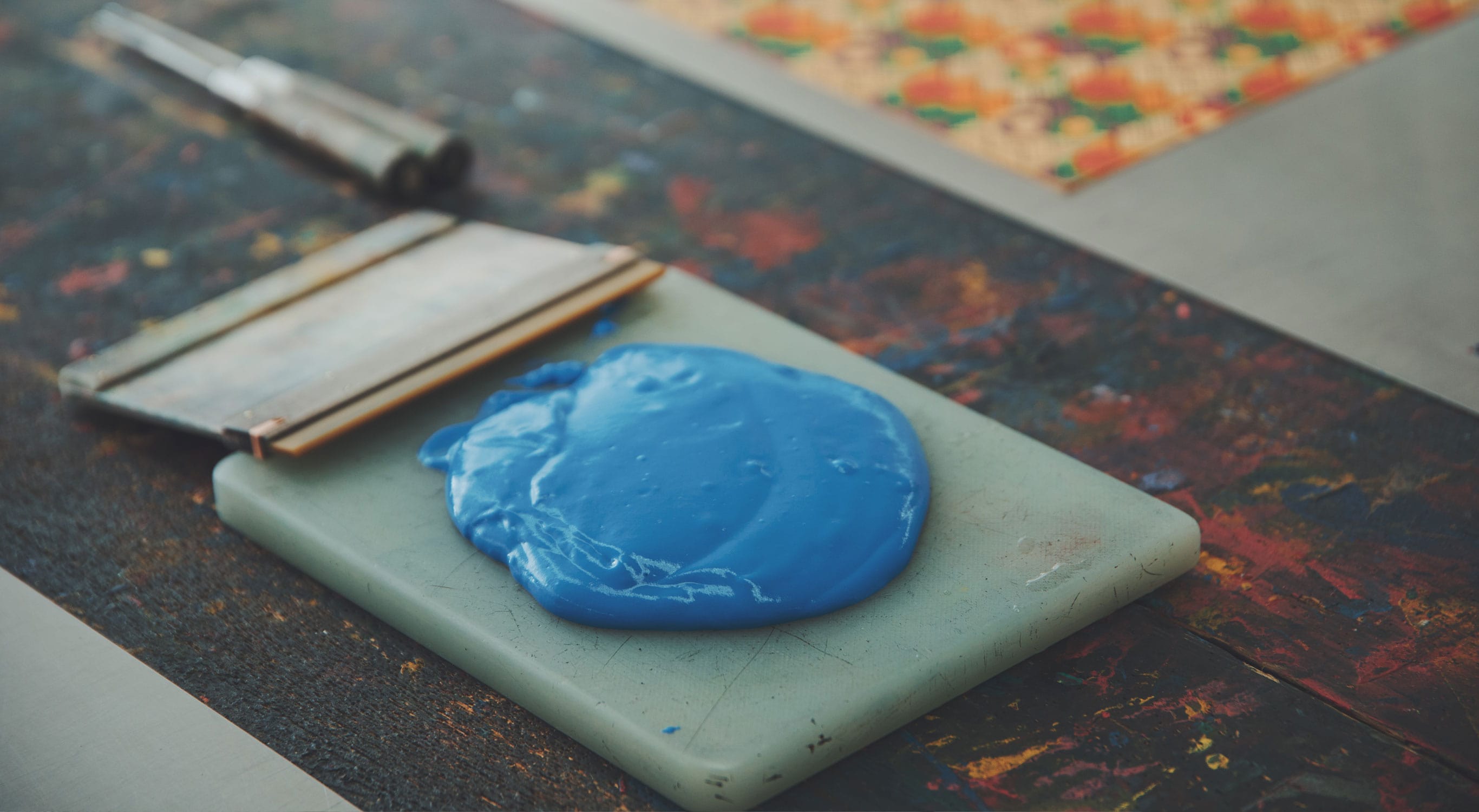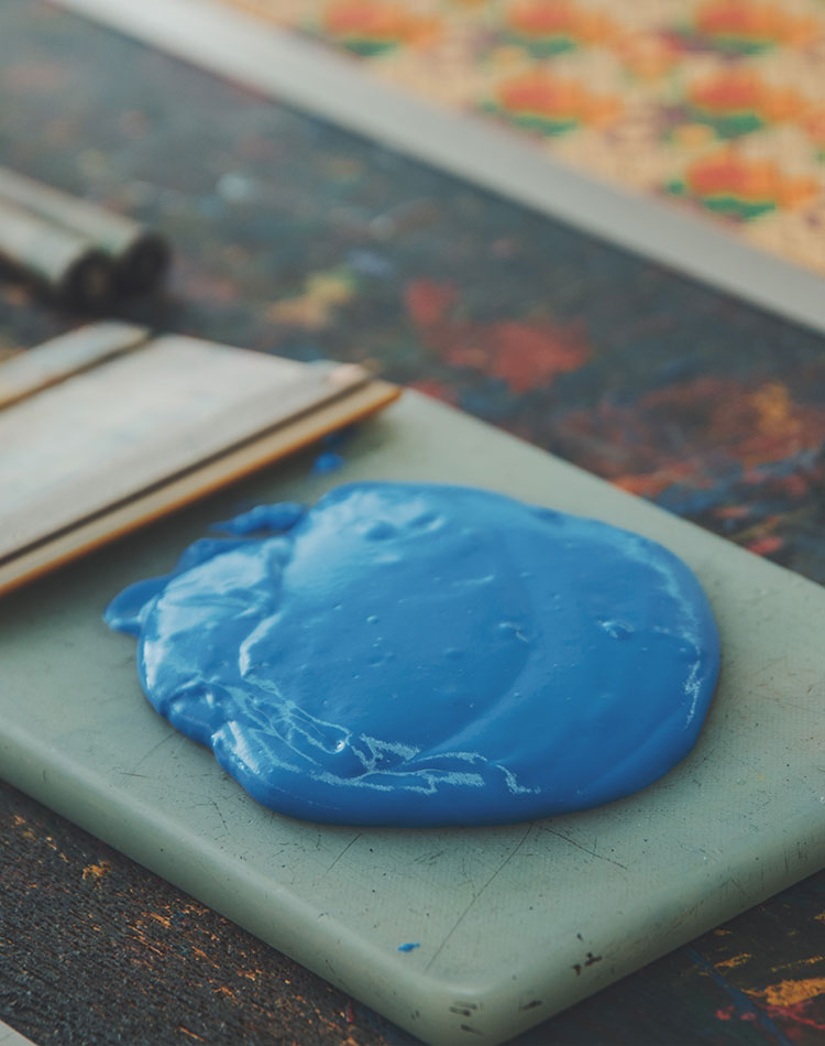 一色ごとに型紙を替え色を重ねていく技は、漆付けと同様に高度な技を要します。