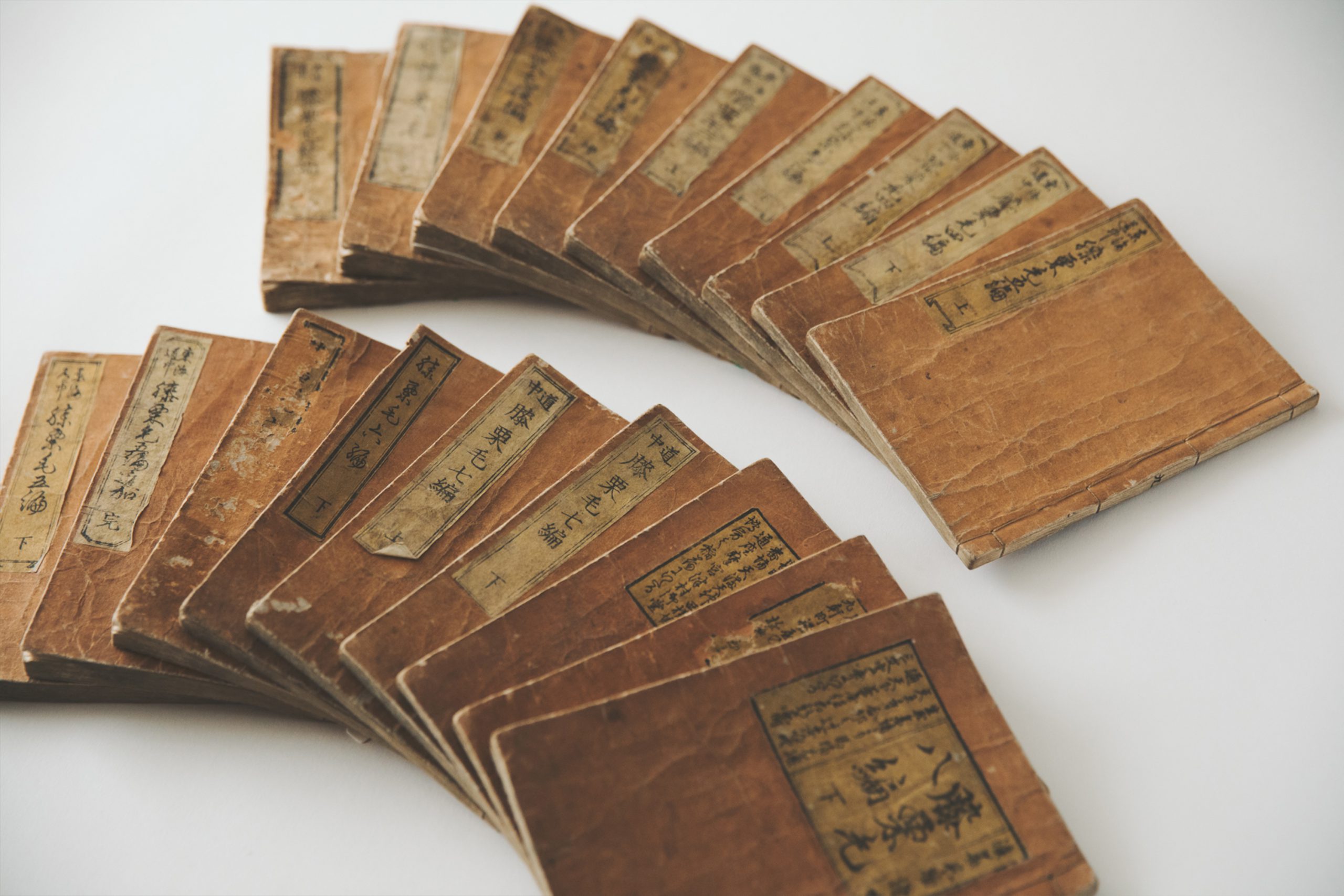 江戸から伊勢、京、大阪までの道中を描いた正編は9 編 18 冊、好評により金比羅参りから善光寺参りの帰路を描いた続編 12編 25 冊が出版された。写真は印傳博物館所蔵の正編。