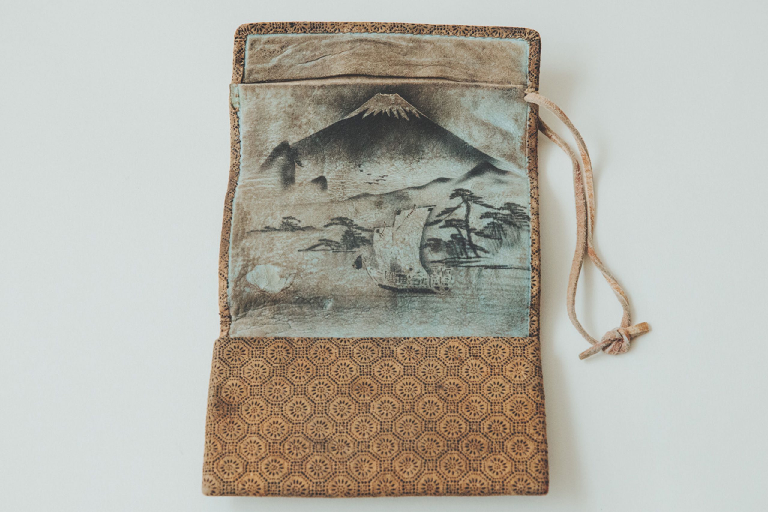 さまざまな美術・工芸に表された富士。印傳博物館には富士山が描かれた印伝の三ツ巻財布が伝わっています