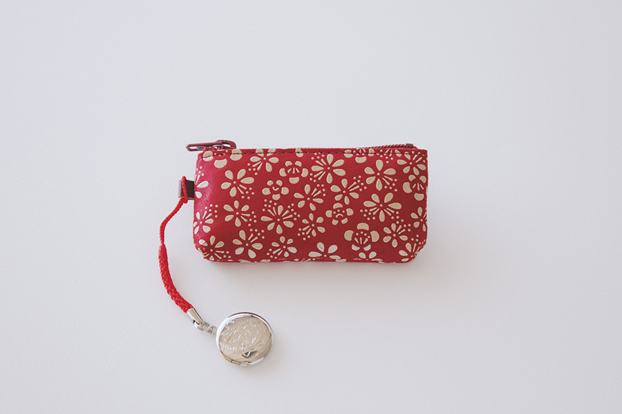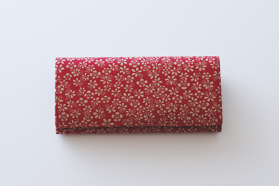 寒さの中で咲く気高さと馥郁たる香りで、天平時代から親しまれてきた梅。各時代で着物や絵巻、器、屋内装飾などに表され、有力氏族の家紋にも使用されてきました。古来より梅・竹・菊・蘭を集めた「四君子」の意匠は気品に満ち風格があるものとされ、また「松竹梅」も冬の寒さに耐えることから「歳寒三友」と称し吉祥模様としてもてはやされ、今日に伝わっています。印傳屋でも梅は独自の図案で模様化され、今も人の手の中でずっと咲き続けています。