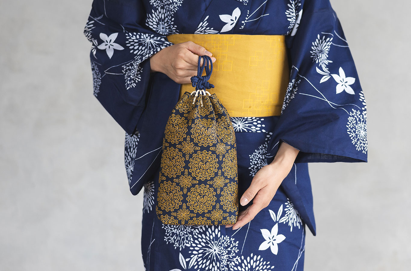 そんな願いをこめて、漆技法でもっとも鮮烈な黄漆の合切袋を新たに創りあげました。